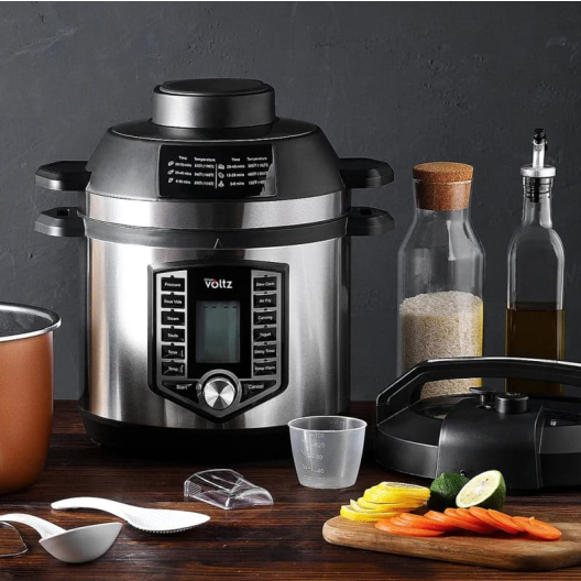 Един уред, който прави всичко - Мултикукър под налягане и Фритюрник Air Fryer 2в1 Oliver Voltz OV51985G6. С този кухненски спътник „всичко в едно“ можете да пържите, готвите под налягане, разполагате с функции за бавно готвене, сотиране и още много.