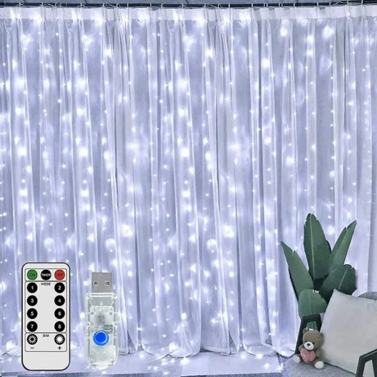 Изненадайте всичките си гости с новата, Коледна светлинна 300 LED завеса, която свети с топла, силна и мека светлинна, студена силнна светлина и в многоцветен вариант. Красивият дизайн, множеството лампички в едно и 8-те режима на осветление очароват всеки потребител.