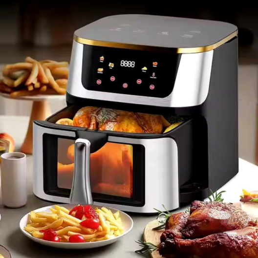 Този фритюрник с горещ въздух с капацитет от 8 литра е идеалното решение за здравословно и удобно готвене у дома. Със своя стилен черен дизайн и интуитивно сензорно управление, той е лесен за използване и перфектно се вписва във всяка кухня. Цифровият екран осигурява прецизен контрол върху температурата и времето, а шестте предварително зададени функции улесняват приготвянето на разнообразни ястия, включително пържени картофи, гриловани зеленчуци, пица и дори сушени плодове.