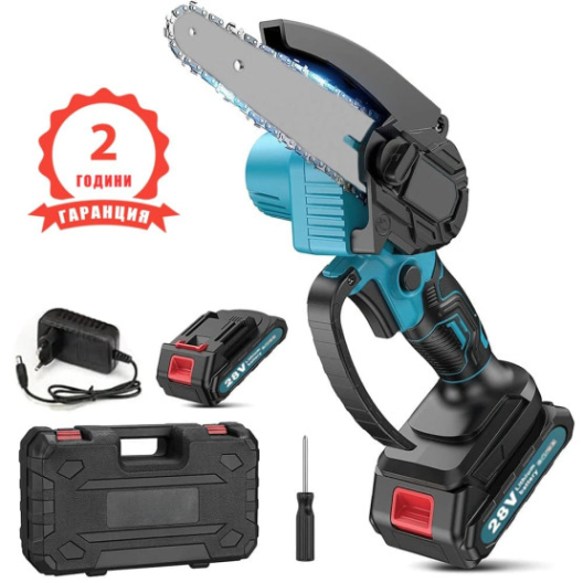 Aкумулаторен верижен трион / резачка 28V, 6" с автоматично смазване на веригата