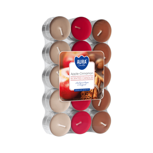 Ароматизирани свещи 30 бр., ø3.9x1.5 см - ябълка и канела
