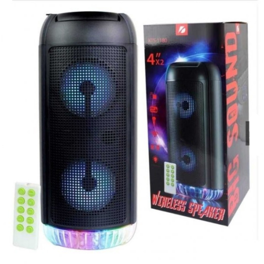Tонколоната е подходяща за партита, празненства, презентации и др. Изключително удобна е за използване на места, където няма електричество. Вградена акумулаторна батерия: 3.7V/2400 mAh. Прослушване на МР3 файлове от карта или флаш памет. Време за зареждане 2-3 часа. Време за възпроизвеждане при ниво на звука 75%: Над 2 часа. 2 броя говорители с размер 11 см. Мощност 2 х 5 Вата. Вградена LED цветомузика в колоните. Малък дисплей. Захранването-зареждането е от порт на компютър или лаптоп USB 2.0, може да използвате и адаптер на 220V който да има изход USB 2.0. Зареждането става чрез кабела в комплекта USB 2.0 към micro USB. LED индикатор за зареждане. Bluetooth свързване към телефон или друго устройство което има Bluetooth свързване, така може да слушате песни чрез уредбата директно от телефона. Максимално безжично разстояние на свързване: 10 метра.