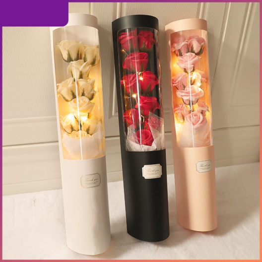 Букет ароматни рози в специална опаковка и LED лампички