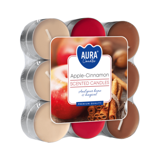 Чаени свещи в алуминиева чашка 18 бр., ø3.9x1.5 см - ябълка и канела