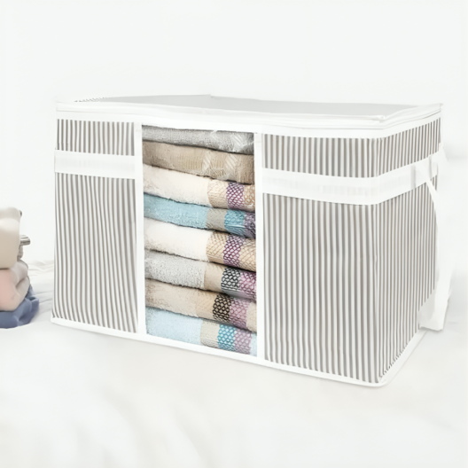 С тази чанта за съхранение ще можете лесно да организирате дрехите си и да спестите време. Прозрачните PVC прозорци ви позволяват бързо и лесно да видите съдържанието, което ви помага да намерите по-бързо това, което търсите. Когато не се използва, чантата може да бъде сгъната, за да не заема излишно място.
