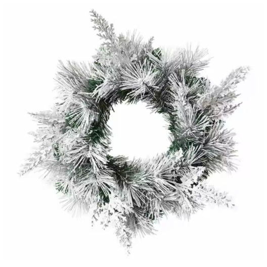 Този елегантен коледен венец е перфектното допълнение към вашата празнична декорация, съчетавайки традиция и стил по начин, който ще впечатли всеки гост. Зелените заснежени клонки, добавят нотка на елегантност и изисканост, която е характерна за традиционния коледен декор.