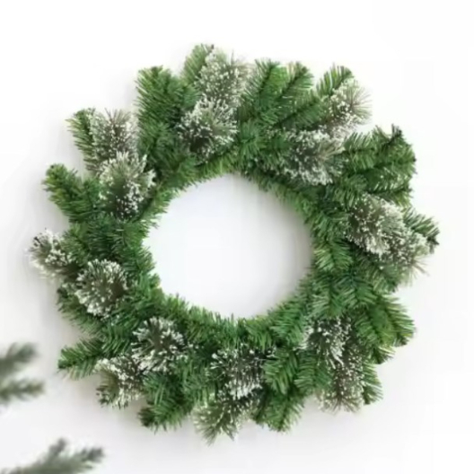 Декоративен заснежен коледен венец