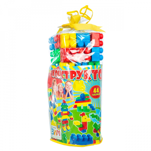 Констуктор с едри елементи в ярки цветове – синьо, зелено, червено и жълто.
