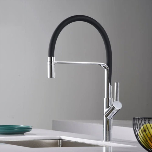 Този стилен и функционален смесител съчетава елегантен дизайн с високо качество, за да осигури перфектното допълнение към всяка модерна кухня. Със своя изтънчен черен и хромиран цвят, той не само ще внесе естетическа стойност, но и ще осигури издръжливост и надеждност.