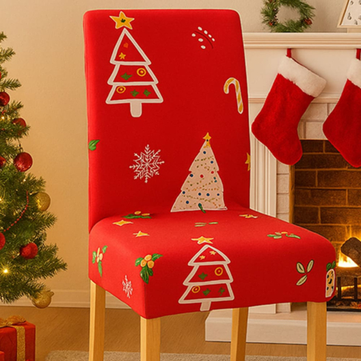 Еластичен калъф за стол Коледни елхи, с еластична лента