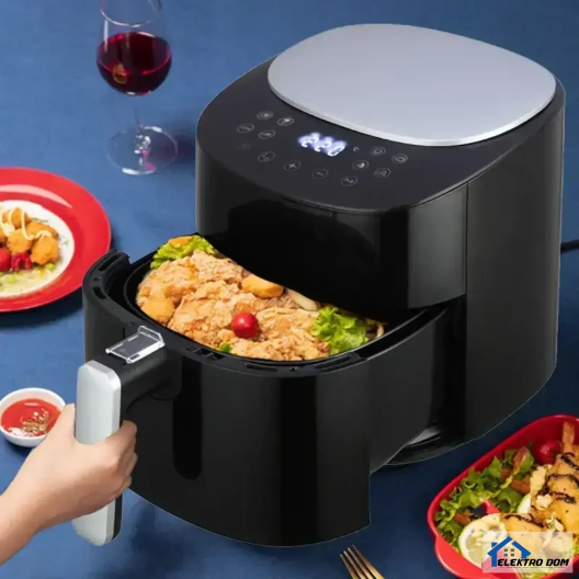 Фритюрник с горещ въздух Oliver Voltz OV51980O, 40-220 C, 1300W, 4.2 литра, Сушене на плодове, Дигитален, 8 програми, Черен