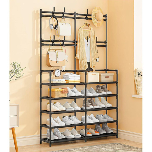 Голяма метална етажерка със закачалки и 5 рафта за обувки и вещи