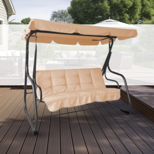 Насладете се на релакс на открито с тази стилна и удобна 3-местна градинска люлка! Проектирана с функция сън, тя лесно се трансформира в легнало положение, за да ви осигури максимален релакс и комфорт през топлите дни. Здравата метална конструкция, дебел и меки възглавници и регулируем сенник я правят идеалният избор за вашия двор, тераса или градина.