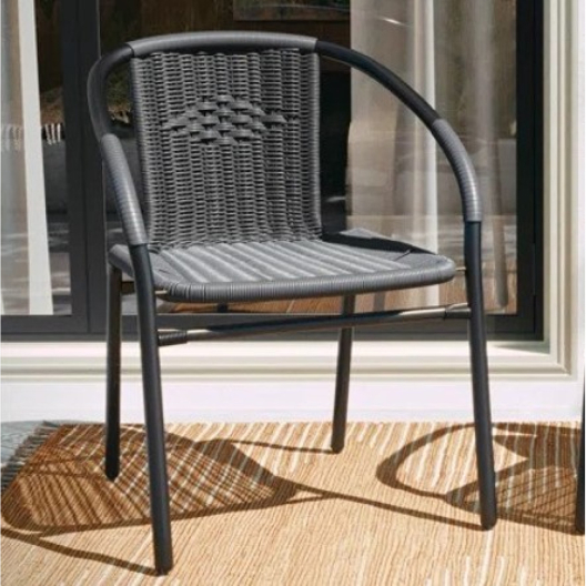 Този елегантен и издръжлив градински стол е идеален избор за всеки, който търси комфорт и стил в откритите и закрити пространства. Изработен с лека, но здрава метална рамка и висококачествена синтетична ратанова оплетка, този стол осигурява удобство и стабилност.