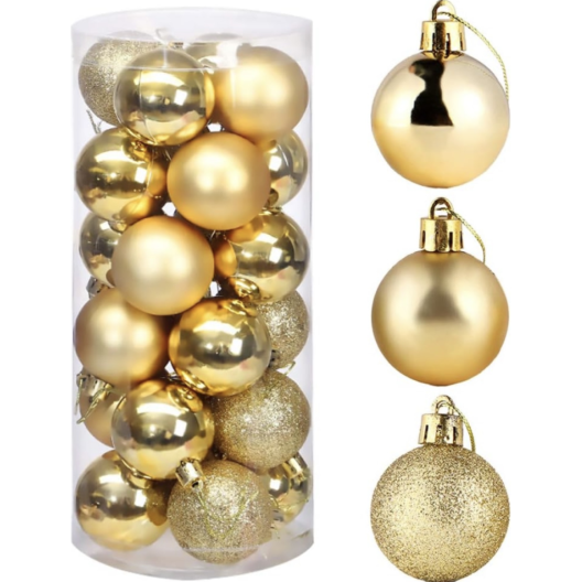 Преобразете вашата коледна елха в истински празничен шедьовър с този комплект от 24 уникални коледни топки. Насладете се на радостта и топлината, които те ще внесат в дома ви, и създайте спомени, които ще се запазят за цял живот.
