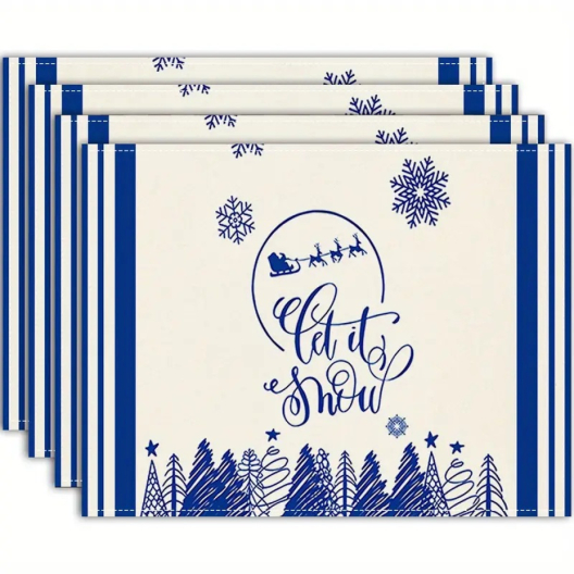 Съчетайте практичност и елегантност с комплекта от 4 броя коледни подложки за маса в дизайн „Шейната на Дядо Коледа“! Тези подложки са създадени, за да донесат свежест и красота на вашата маса, като в същото време я предпазват от ежедневни следи и петна. Подходящи както за празнични събирания, така и за ежедневна употреба, тези подложки ще направят всеки повод специален.