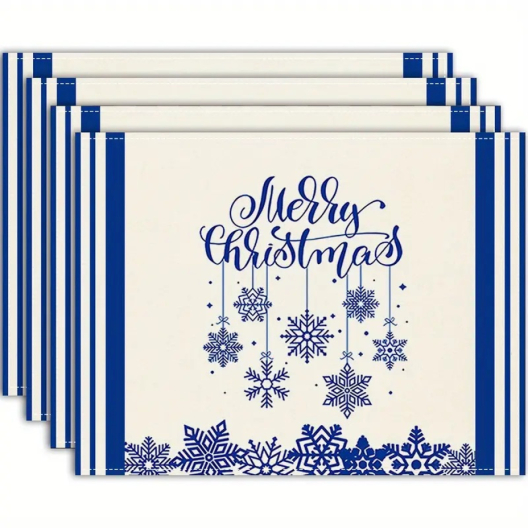 Съчетайте практичност и елегантност с комплекта от 4 броя коледни подложки за маса в дизайн „Весела Коледа“! Тези подложки са създадени, за да донесат свежест и красота на вашата маса, като в същото време я предпазват от ежедневни следи и петна. Подходящи както за празнични събирания, така и за ежедневна употреба, тези подложки ще направят всеки повод специален.