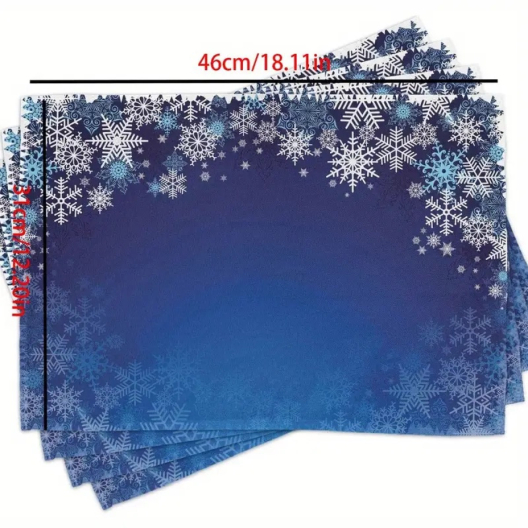 Комплект 4 броя коледни подложки за маса - Сини и бели снежинки, 31x46 см.
