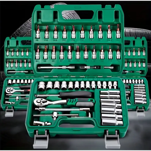 Този комплект е идеалното решение за всеки автомобилен ентусиаст или професионалист, който търси надеждни и висококачествени инструменти за ремонт на автомобили. Включвайки разнообразие от ключове, тресчотки, отвертки и други основни инструменти, комплектът предоставя всичко необходимо за бърз и ефективен ремонт. Независимо дали сте вкъщи, на пътя или в сервиз, този универсален набор ще ви помогне да извършвате ремонти с лекота и увереност.