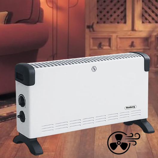 Конвектор Rosberg R51974FT, 2000W, 3 степени, Турбо вентилатор, Термостат, Защита от прегряване, Бял