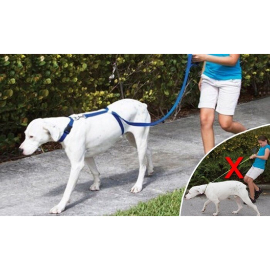 С тази кучешка каишка треньор прилагате стабилна, но кротка съпротива, казвайки на кучето си да спре непрестанното дърпане по време на разходка.