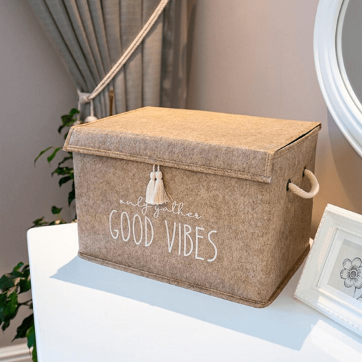 Кутията-органайзер с капак в размери 35x24x24 см. е перфектното решение за стилно и ефективно организиране на вашите вещи у дома.