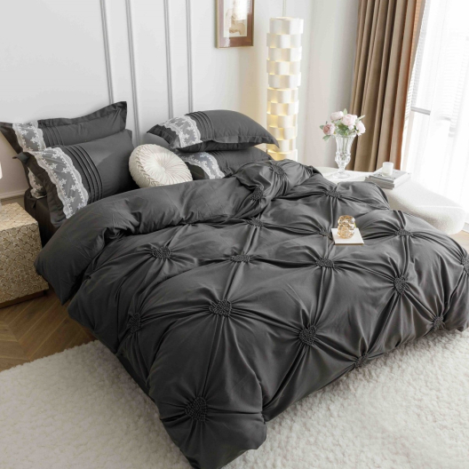 Луксозен спален комплект с бродерия от 6 части – Тъмносив