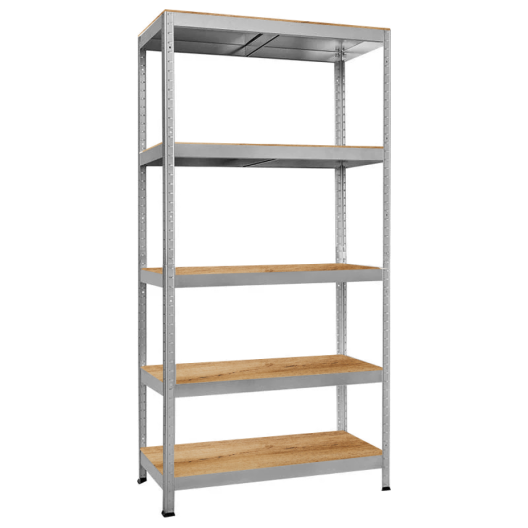 Рафтовете от MDF материал са здрави и устойчиви, осигурявайки стабилност и сигурност за вашите вещи. Поцинкованата стоманена конструкция предпазва от ръжда и корозия, гарантирайки дълготрайна употреба дори в по-влажни среди като мазета и гаражи.