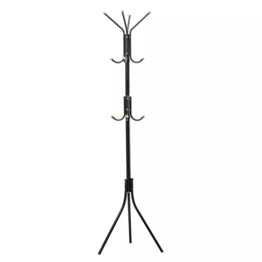 Тази свободностояща закачалка се предлага не само с 1, а с цели 3 нива по 4 куки, подходящи за палта, шапки, чанти и много други.