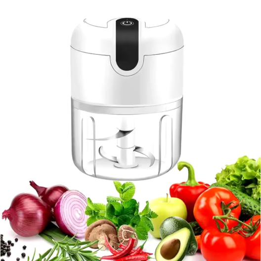 Мини електрически чопър за зеленчуци и плодове, 12x9 см, бял