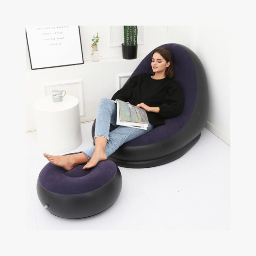 Надуваемият фотьойл с табуретка е подходящ за всяка част от дома и за различни външни пространства. Можете да го използвате в хола, спалнята, на балкона, в градината или на верандата. Лекотата на транспортиране и съхранение го прави също така перфектен за къмпинг, пътувания, плаж, планински преходи и други приключения на открито. Сгъваемият дизайн позволява лесно пренасяне и съхранение, когато не се използва.