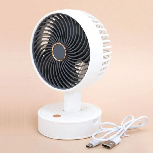 Добавете свежест и комфорт към работното си място или дома с настолния безжичен мини USB вентилатор в елегантен бял дизайн с черна предпазна решетка.