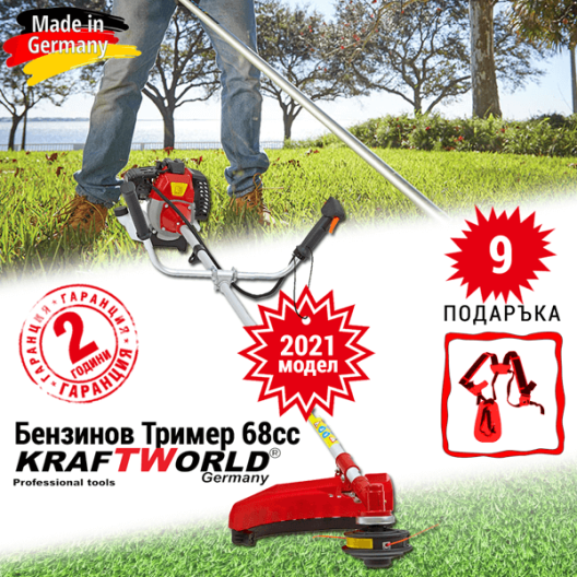 Немски бензинов Тример за трева KraftWorld 68 куб. + 9 Подаръка