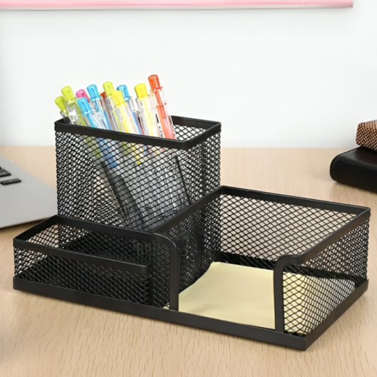 С високото си отделение за писалки, малкото отделение за дребни материали и специалното място за бележки, този органайзер е идеалното допълнение към всяко бюро.