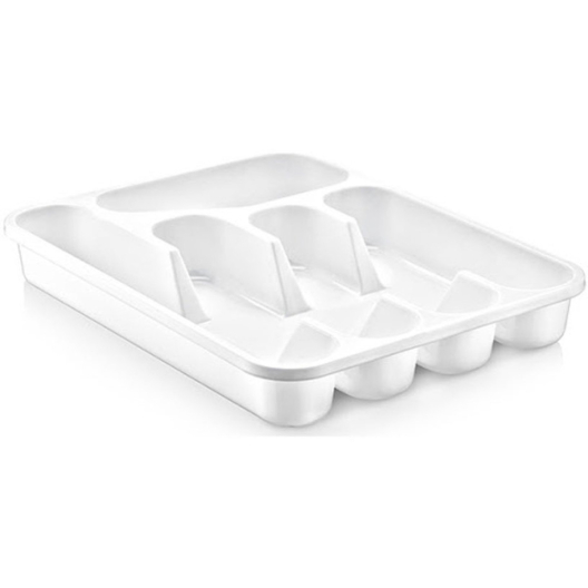 Органайзерът предлага стилен и практичен начин за подреждане на вашите кухненски принадлежности. Той е перфектен за съхранение на ножове, вилици, лъжици и други прибори, като ви помага да поддържате ред и лесен достъп до всичко необходимо. Белият цвят на органайзера придава свеж и чист вид на вашата кухня, вписвайки се перфектно във всяко интериорно решение.