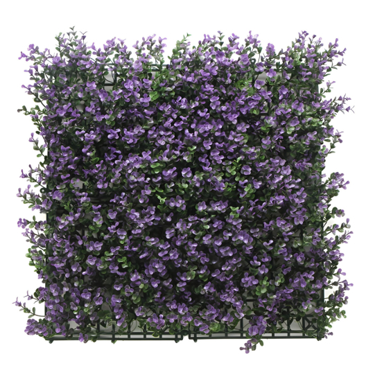 Вдъхнете нов живот на вашите пространства с тези изискани пана от изкуствена зелена декорация с лилави цветчета. Тези пана са проектирани, за да внесат усещане за свежест и естествена красота във всяко помещение, независимо дали е вътре или навън. С размер от 50х50 см, те предлагат идеалния баланс между функционалност и естетика. С гъстота от 324 елемента на панел, те осигуряват плътно и наситено зелено покритие, което създава усещане за истинска природна среда.