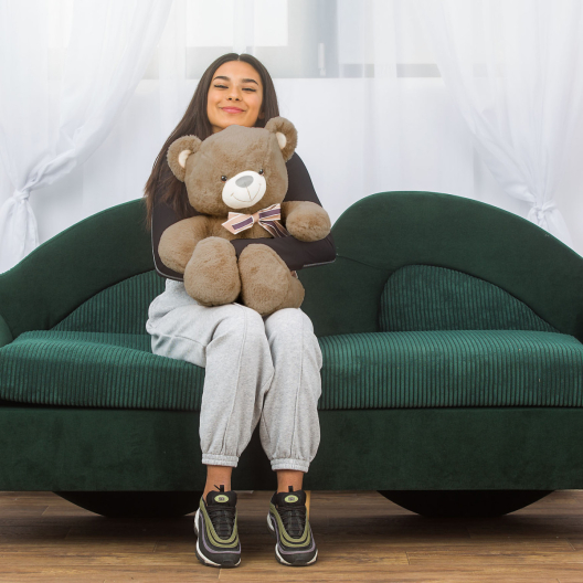 Впечатляващ е класическия плюшен мечок, който е толкова мек и сладък, че докосвайки го ще забравите грижи и тревоги. Усмивката ви ще изгрее на лицето веднага.