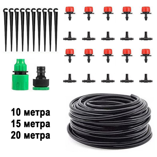 - 20 м маркуч с 20 тройника, 20 дюзи и 20 шипа за закрепване на маркуча