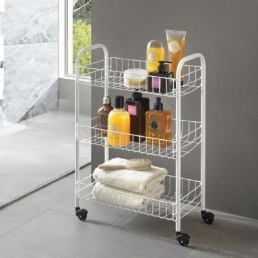 Преносимата етажерка с 3 рафта е изработена изцяло от метал и има елегантен, семпъл и компактен дизайн.