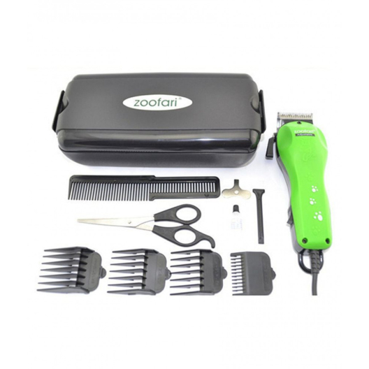 В комплект с машинката за кучета получавате още 4 приставки (3, 6, 9 и 12 мм.) ножица, четка за почистване, гребен и смазващо масло. Може да съхранявате и транспортирате удобно навсякъде в пластмасовата кутия. Моделът е с дълъг кабел, за да си осигурите максимално удобство при ползване. Разполага с ергономична дръжка и е много устойчив. Моторът е мощен, но достатъчно тих, за да не дразни животинката.