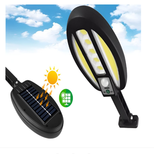 Сензорната лампа се захранва от соларен панел, което гарантира осветление без нужда от допълнителен източник на енергия. Тя е оборудвана с 95 COB светодиода, които са по-ярки и консумират по-малко енергия от обикновените светодиоди.