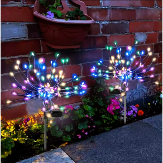 Изработена от висококачествени материали, лампата разполага със соларен панел, който осигурява автоматично зареждане през деня, а вградената интелигентна система я включва автоматично при здрач. Гъвкавият ѝ дизайн позволява различни аранжировки, наподобяващи фойерверки, което я прави идеален избор за градини, дворове, пътеки, тревни площи и декоративни кътчета.