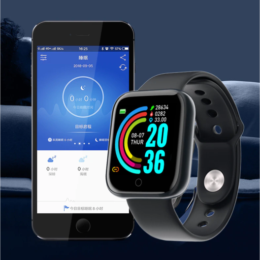 Смарт часовник D20, Крачкомер, Кръвно налягане, IP67, Мониторинг на съня, Изгорени калории, Черен