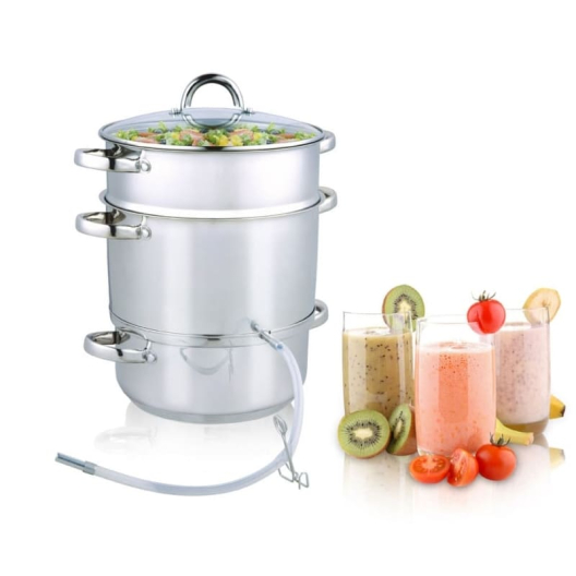 Соковарката от неръждаема стомана Rosberg R51260A с оптимален обем от 8 литра е подходяща за приготвяне на сокове от плодове, зеленчуци и билки, както и на желе и ликьор. Извлича напълно хранителните вещества и фибри.