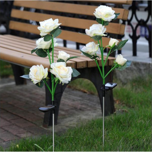 Соларна декоративна градинска лампа – модел роза, бяло/зелено