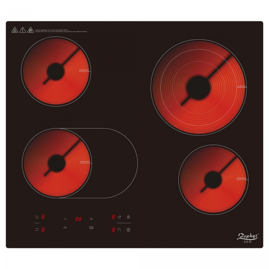 Стъклокерамичен котлон за вграждане Zephyr ZP 1445 IR4, 6700W, Инфрачервен нагревател, Четворен, Черен