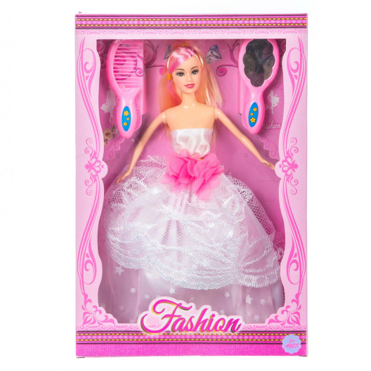 Сватбена руса кукла играчка за момичета. Комплектът идва с пухнала бяла рокля, огледалце и гребен, за ресане на косата и. Подходяща за деца над 3 години. Висока е 29см.