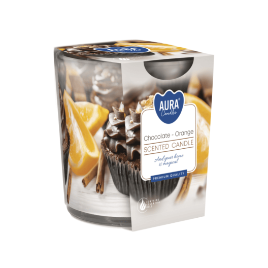 Свещ в чаша, ø7.2x7.8 см - шоколад и портокал
