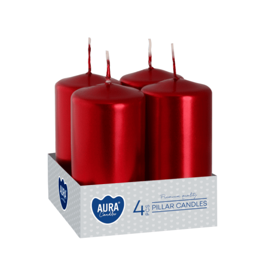 Свещи вотив 4 бр., ø3.8x8 см - червен металик