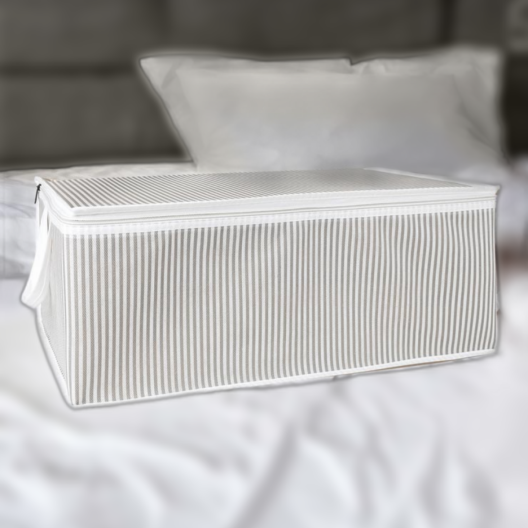 Този текстилен органайзер с цип е идеалното решение за подреждане и съхранение на вашите дрехи, одеяла и други текстилни изделия в дома ви. Със своите размери, той предлага широк вътрешен обем, в който можете да съхранявате всичко, което ви е необходимо.